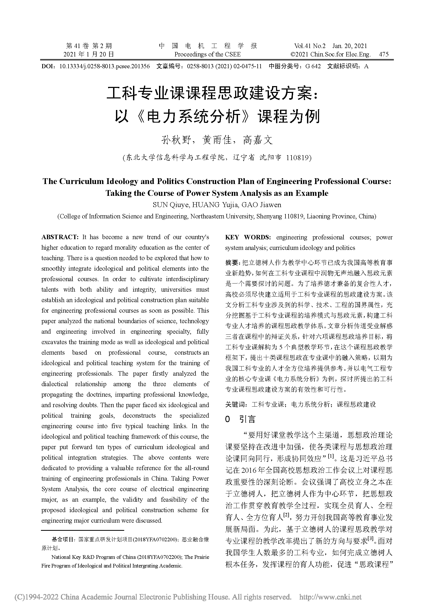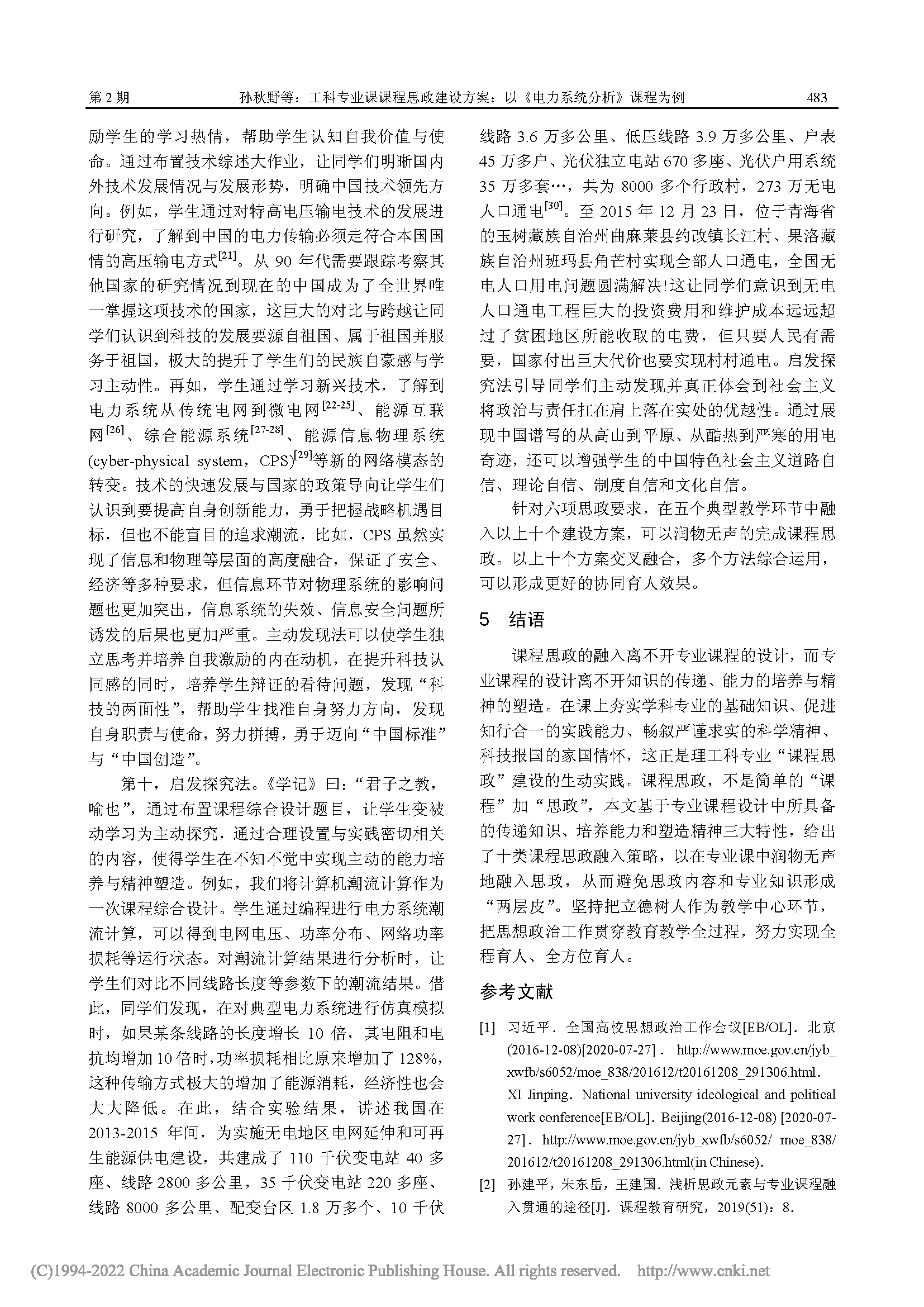 工科专业课课程思政建设方案:以《电力系统分析》课程为例 |