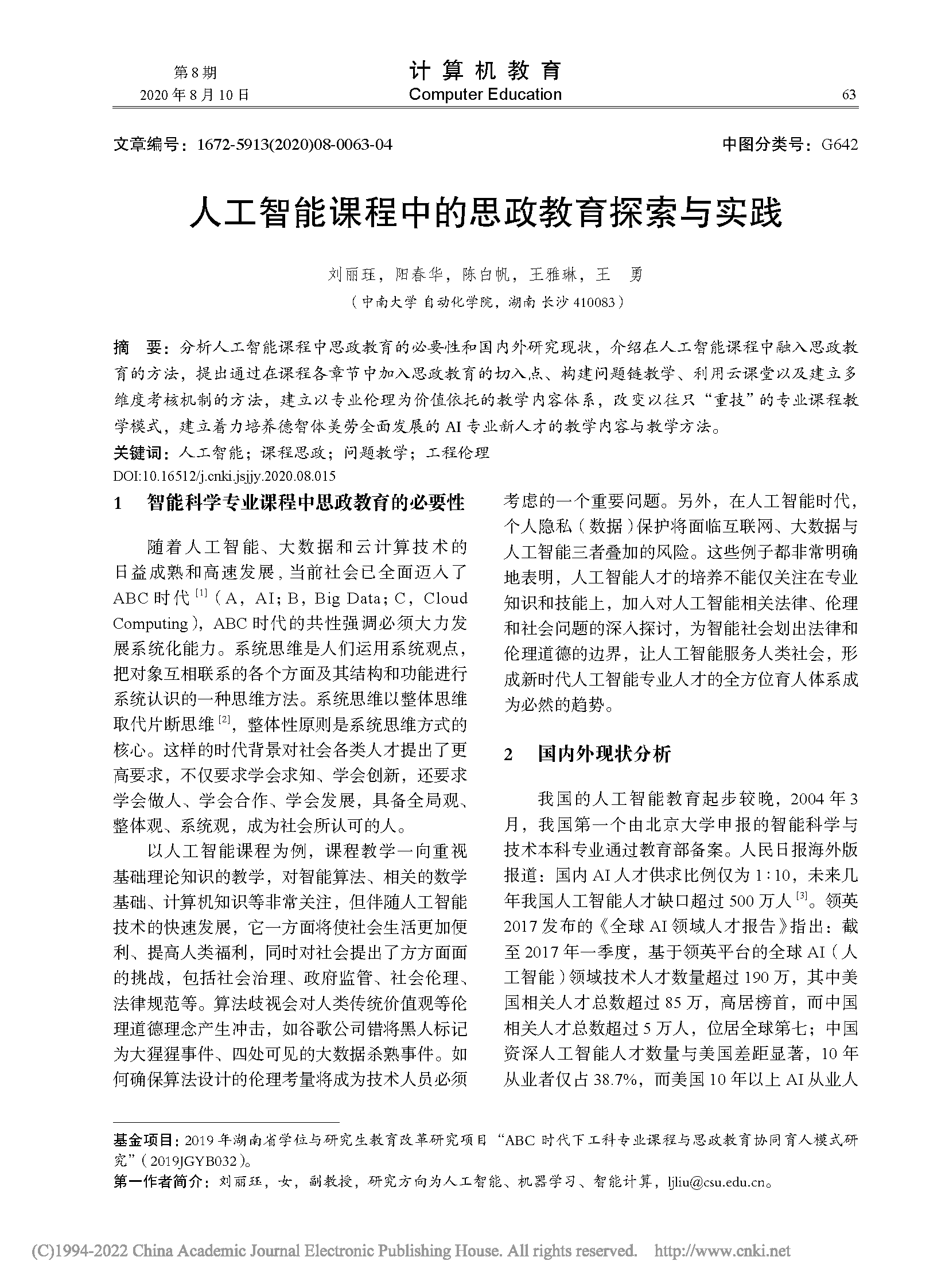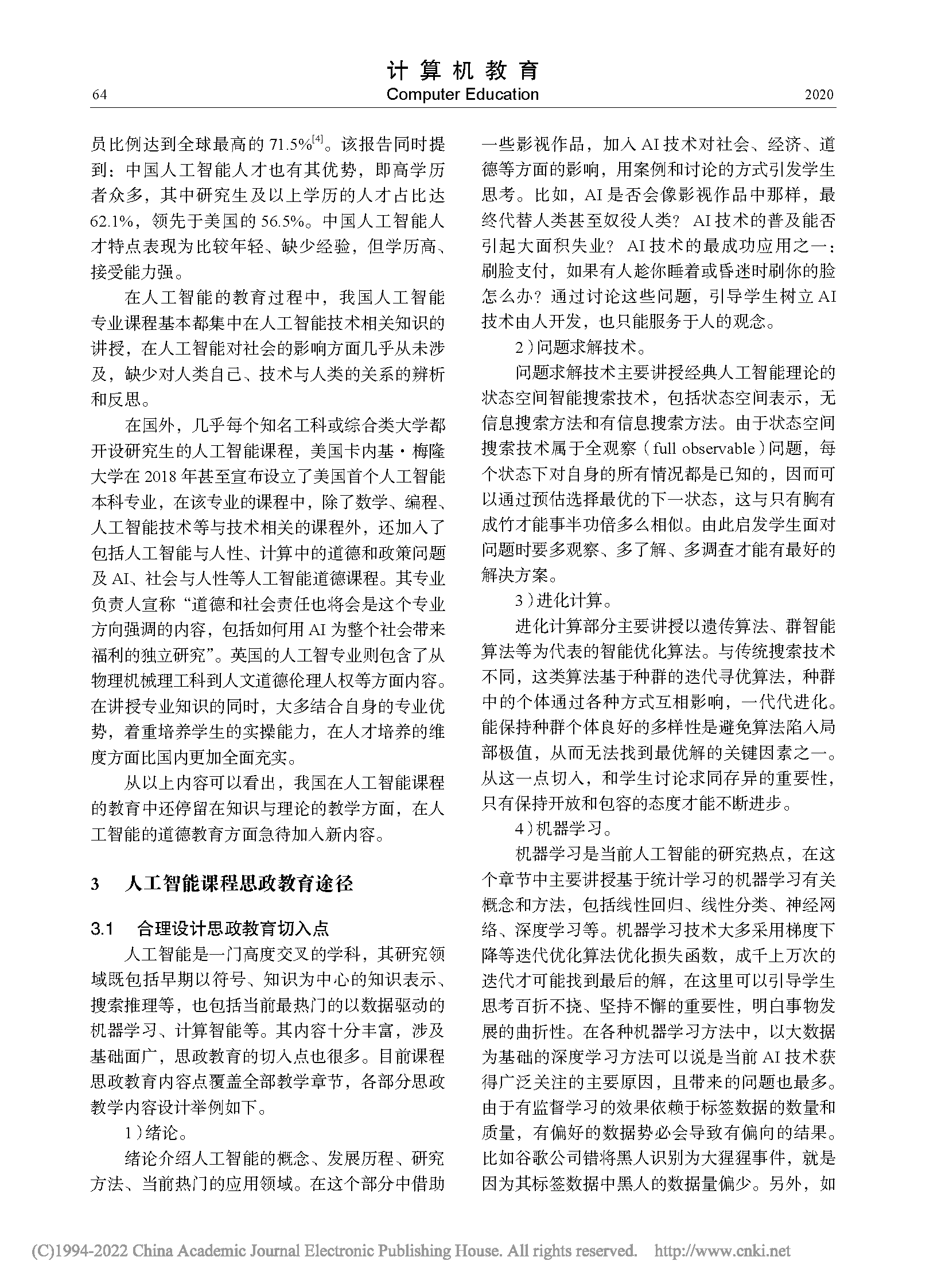 人工智能课程中的思政教育探索与实践 |