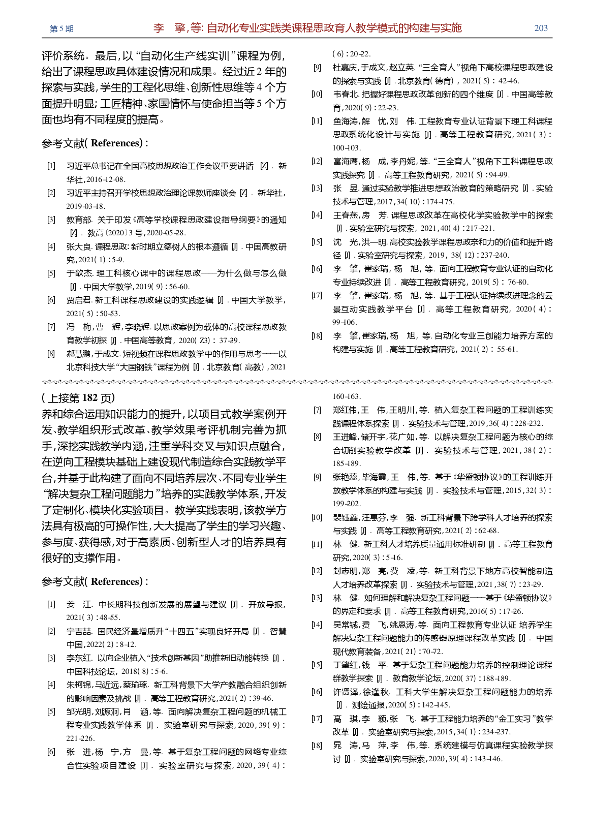 自动化专业实践类课程思政育人教学模式的构建与实施 |