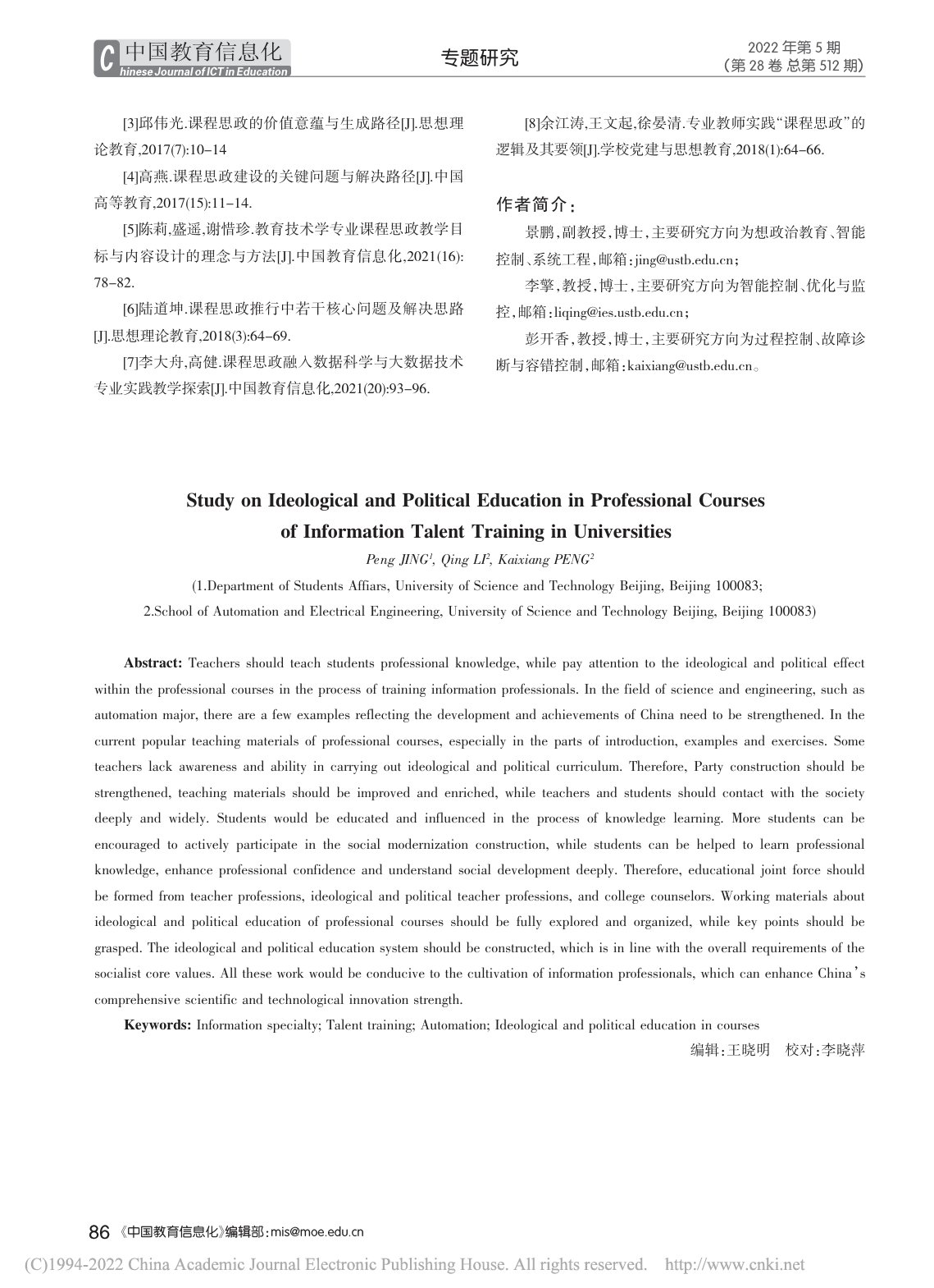 高校信息类专业人才培养中的课程思政问题研究 |