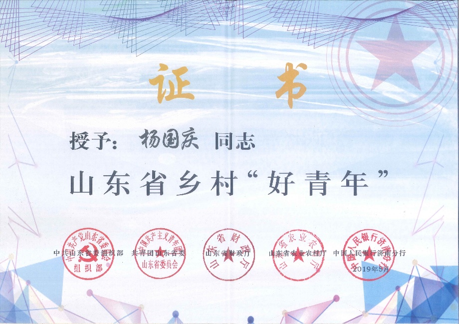 [26] 【优秀青年奖】2019年5月,杨国庆获山东省乡村“好青年”
