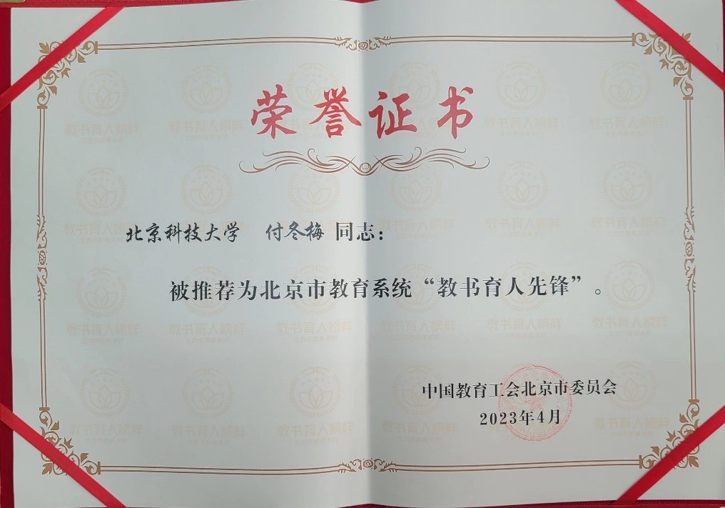[19] 【育人先锋奖】2023年4月,付冬梅获北京市教育系统教书育人先锋