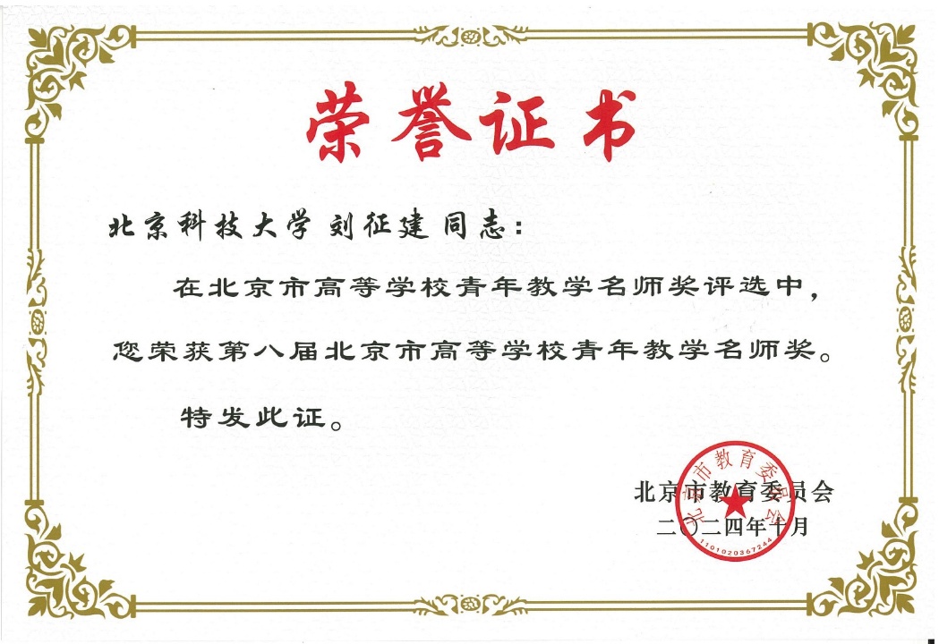 [22] 【教学名师奖】2024年8月,刘征建获北京市高等学校青年教学名师奖