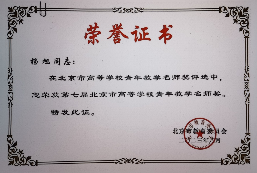 [21] 【教学名师奖】2023年8月,杨旭获北京市高等学校青年教学名师奖