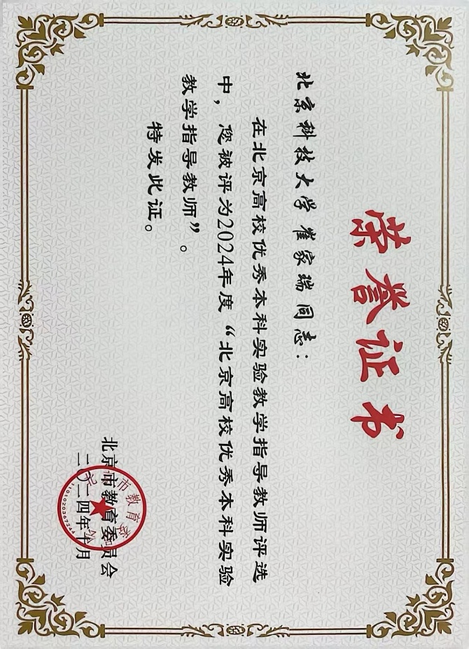 [25] 【优秀教师奖】2024年10月,崔家瑞获北京高校优秀本科实验指导教师