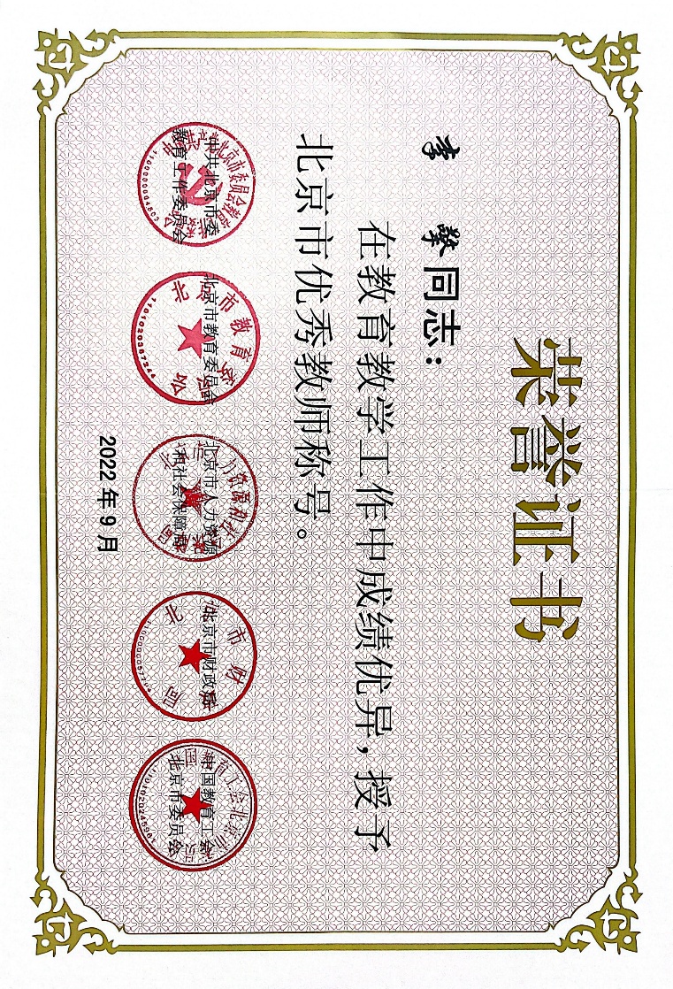 [23] 【优秀教师奖】2022年9月,李擎获北京市优秀教师奖