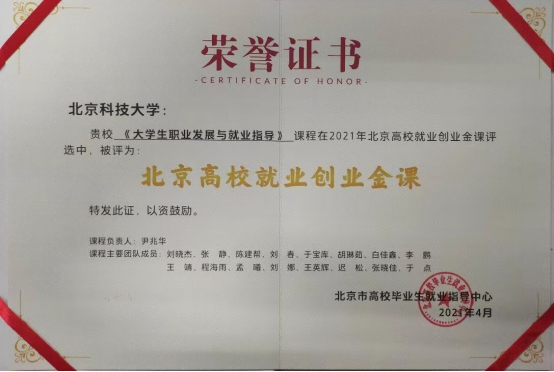 [37] 【北京高校就业创业金课】2021年4月,“大学生职业发展与就业指导”获北京高校就业创业金课