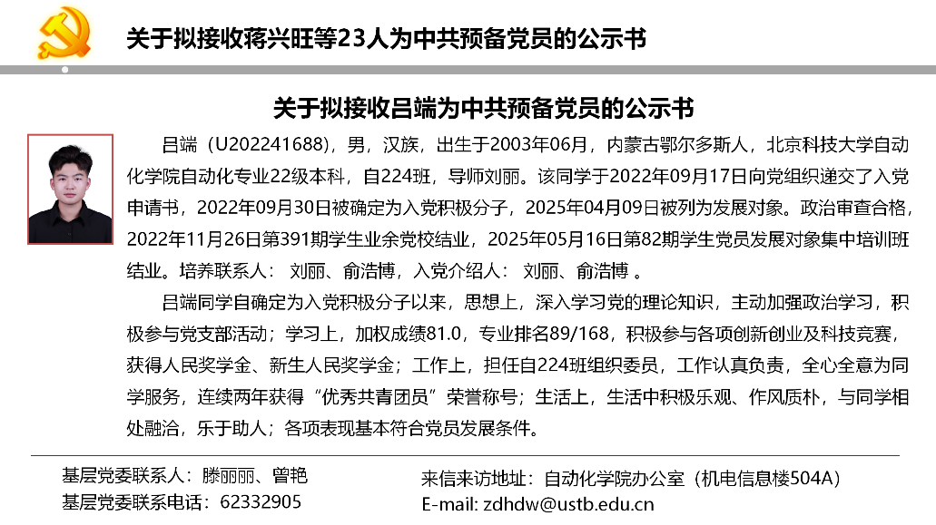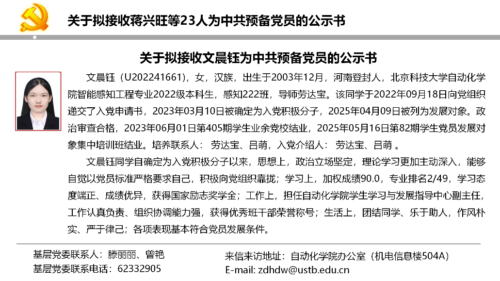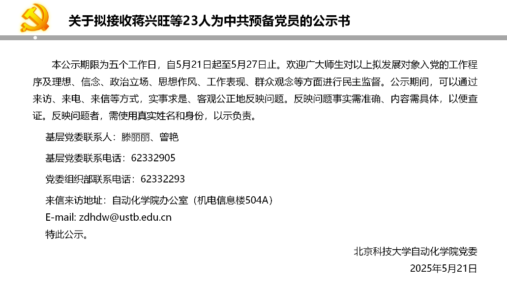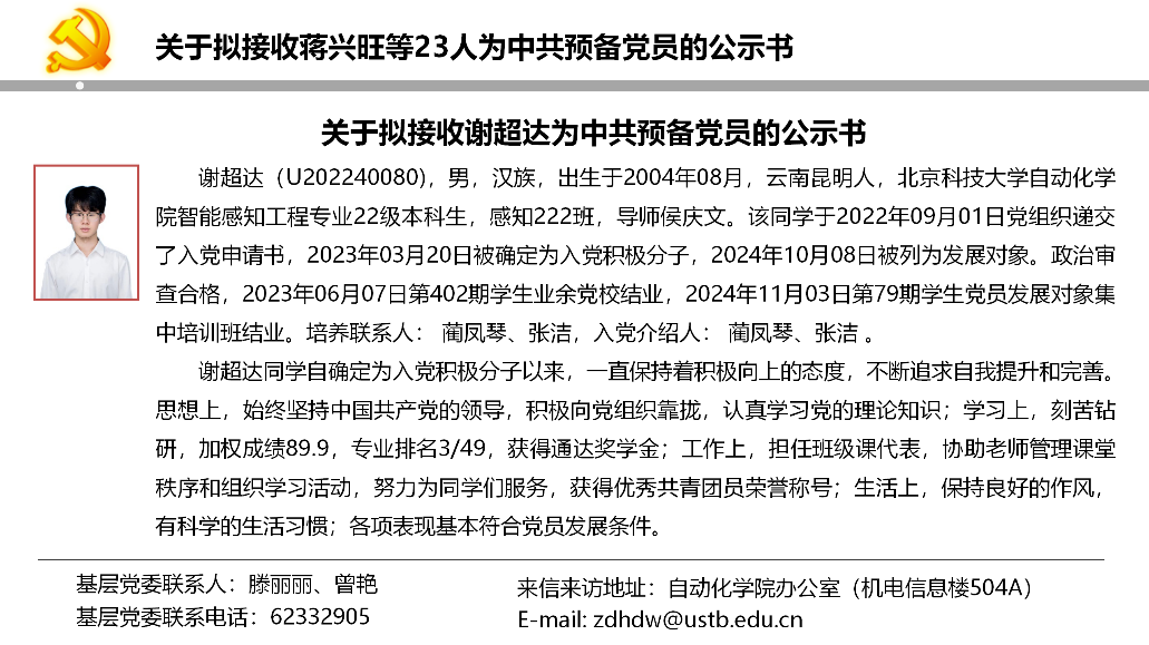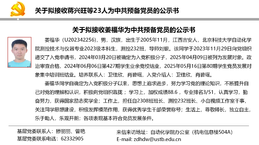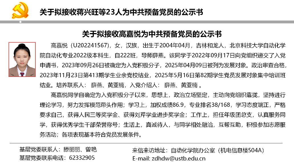 关于拟接收蒋兴旺等23人为中共预备党员的公示书