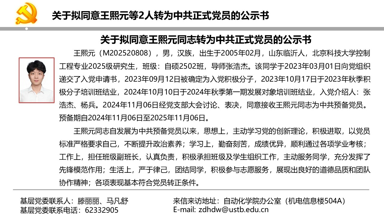 关于拟同意王熙元等2人转为中共正式党员的公示书